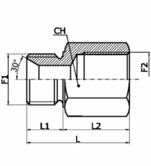 | Code | Ø F1 | Ø F2 | L | L1 | L2 | CH |